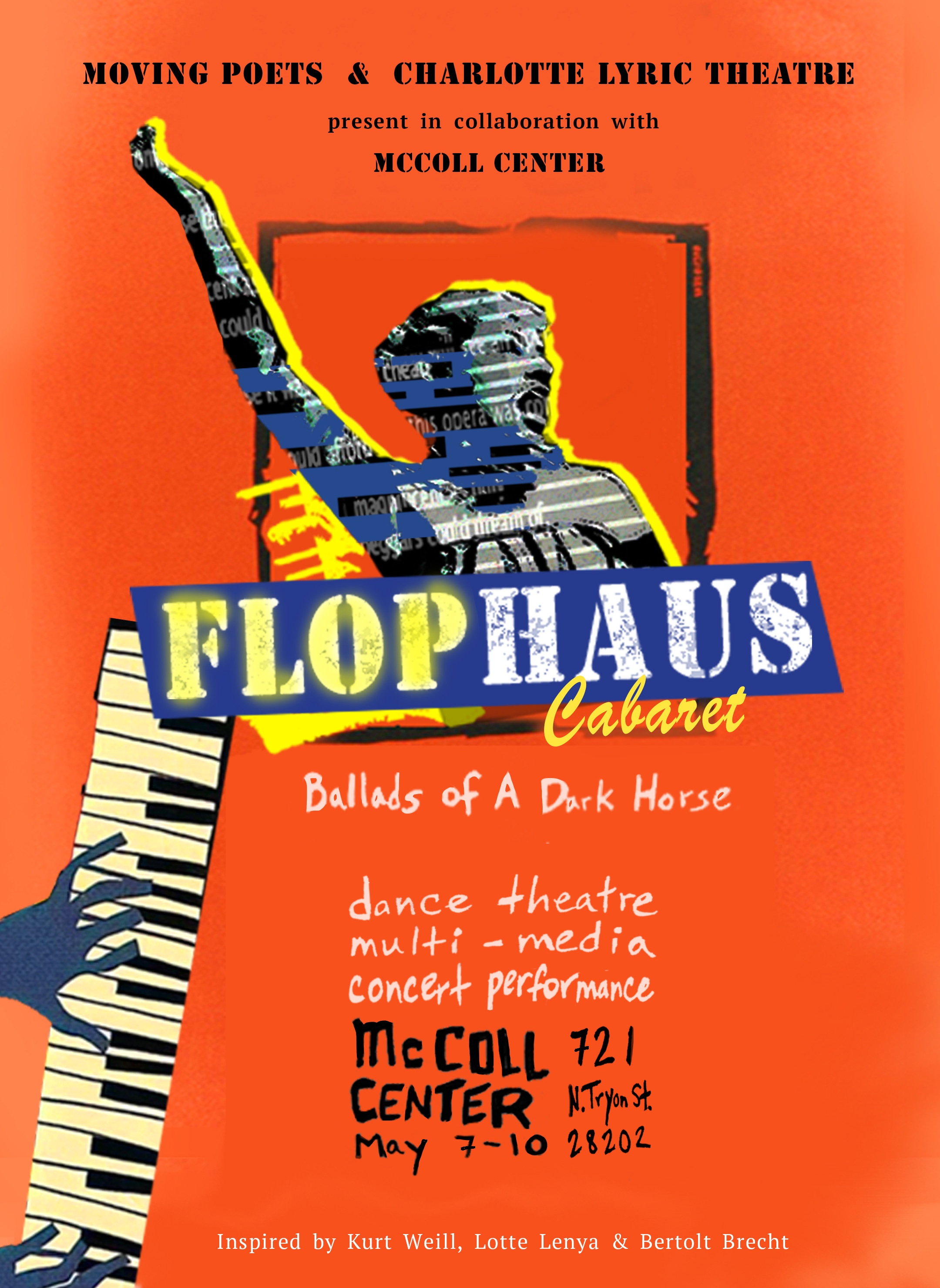 FlopHAUS Cabaret, Ballads of A Dark Horse is a provocative cabaret style social satire inspired by the legendary work of Kurt Weill, Lotte Lenya and Bertolt Brecht. Defiantly sharp as Mack the Knife's blade, this raw dark comedy includes original and contemporary adaptations of Weill's works such as 'How to Survive’, 'Alabama Moon', and ‘Pirate Jenny’. In the tradition of the witty yet politically dissonant 'Beggars Opera', FlopHAUS Cabaret cunningly exposes hypocrisy, corruption and moral ambiguity of society, with a wink and nod “Happy End”. Expressed through theater, dance, jazz and opera, this multi-media music production is performed by over 35 national, regional and Charlotte-based actors, dancers, musicians, and singers.